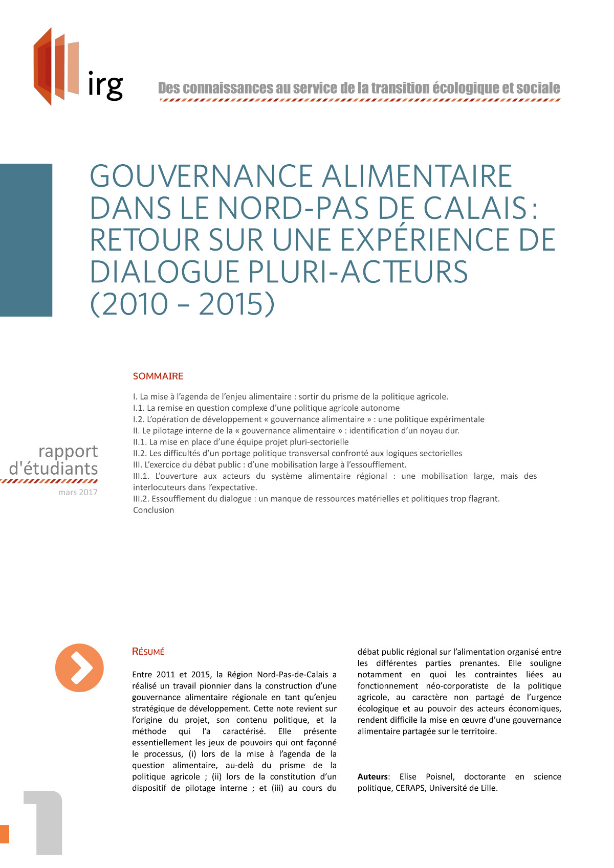 Gouvernance alimentaire dans le Nord-Pas de Calais : retour sur une expérience de dialogue pluri-acteurs (2010 – 2015)