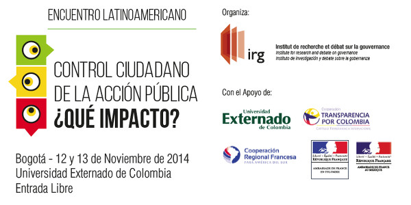 - Cet atelier, initié et coordonné par l’IRG, a été organisé par le ministère des Affaires étrangères et européennes, le service de la coopération régionale andine, l’ambassade de France en Colombie et l’université Externado à Bogota. Durant deux jours, une trentaine d’invités de différentes origines socio-professionnelles (universitaires, représentants d’organisation sociales, fonctionnaires) et géographiques (Pérou, Bolivie, Colombie, Venezuela, Équateur, France) ont débattu sur les enjeux des réformes d’administration publique dans la région andine et leurs implications en matière de coopération.