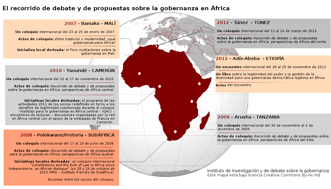 Coordinado por el IRG, el Recorrido internacional de debate y de propuestas sobre la gobernanza tiene como objetivo identificar y comprender las fuentes reales de legitimidad (las tradiciones, las religiones etc.) y sus interacciones en las diferentes sub-regiones. En términos más generales, se intenta analizar las modalidades posibles de articulaciones constructivas entre estas fuentes de legitimidad con el fin de favorecer el desarrollo de una regulación compartida dentro de una sociedad determinada.